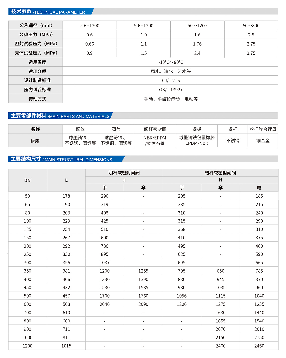 3、閘板橡膠與鑄鐵骨架之間粘間強(qiáng)度高。鑄鐵骨架外表面全部包覆橡膠;包膠厚度均高于國(guó)家標(biāo)準(zhǔn)規(guī)定,包膠工藝采用先進(jìn)的注膠成型技術(shù),成型后的閘板表面光潔無缺陷,橡膠厚度均勻其粘合強(qiáng)度高,彈性好,使用壽命長(zhǎng)。