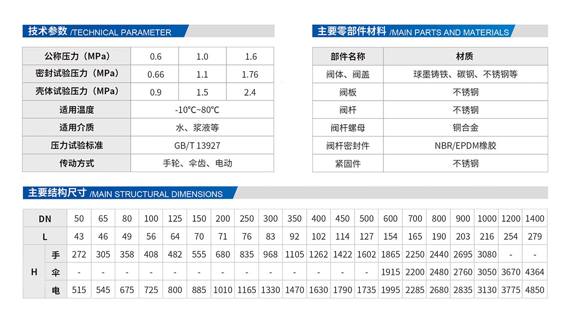 6、閥體內(nèi)外涂覆環(huán)氧樹脂層,閥板緊固件采用不銹鋼,密封件為丁腈橡膠,防腐性能好。
