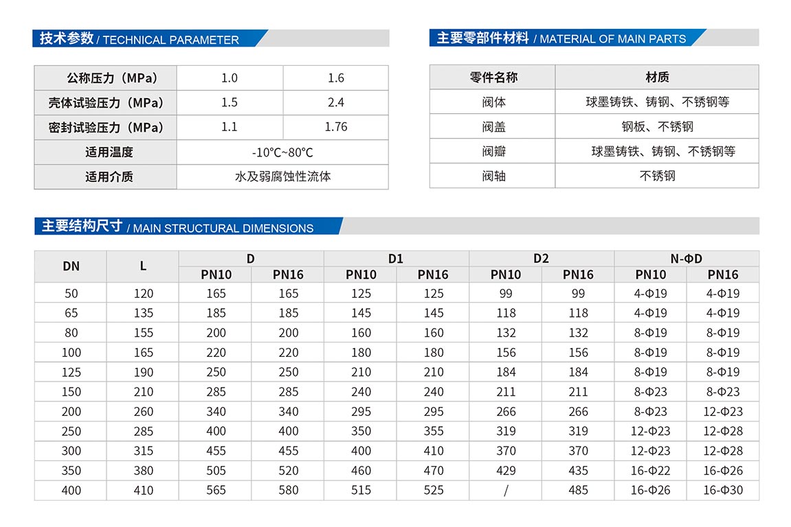 3、閥瓣關(guān)閉的行程短,只有公稱通徑的1/4,閥瓣的關(guān)閉時間短,減少了水錘的產(chǎn)生。